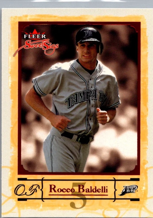 This is a nice example of a 2004 Fleer Sweet Sigs #35 Rocco Baldelli Gold