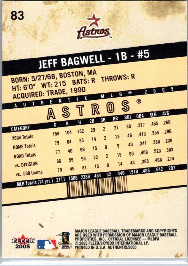 This is a nice example of a 2005 Fleer Authentix #83 Jeff Bagwell