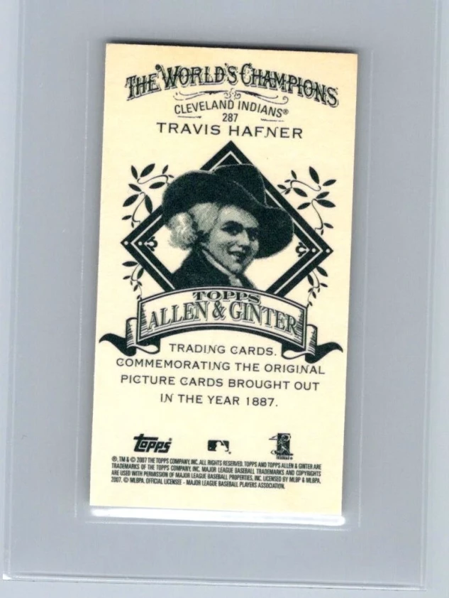 This is a nice example of a 2007 Topps Allen & Ginter #287 Travis Hafner Mini A & G Back