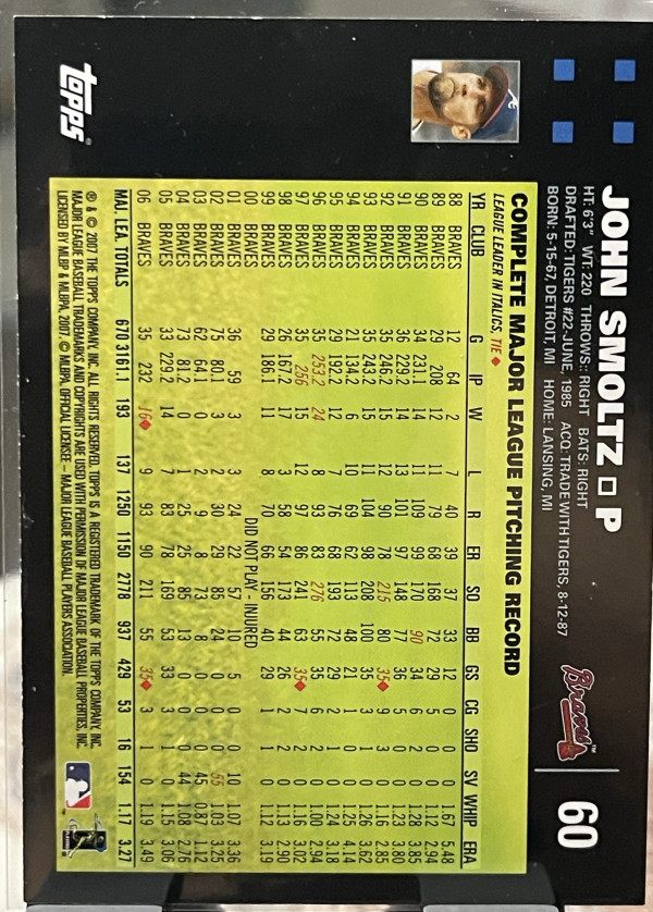 2007 Topps John Smoltz #60 1st Edition