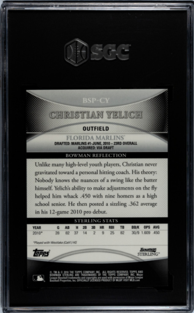 2010 Bowman Sterling Christian Yelich SGC 9.5