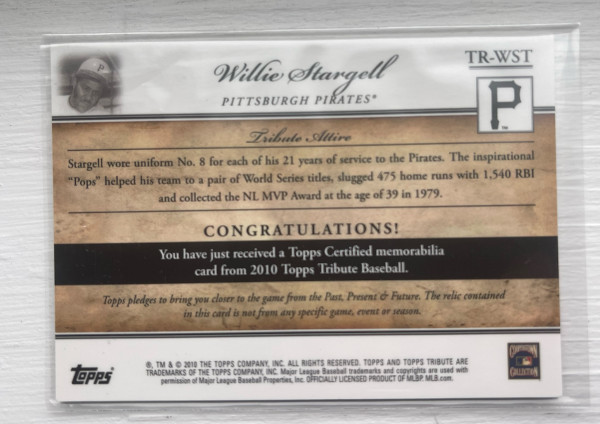 2010 Topps Tribute Relic Gold /25 Willie Stargell #TR-WST HOF