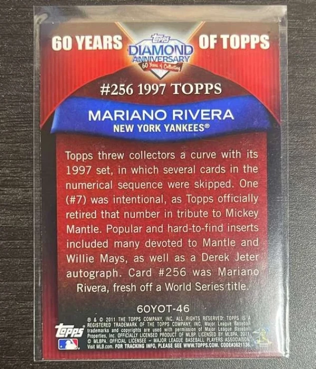 This is a nice example of a 2011 Topps - 60 Years of Topps #60YOT-46 Mariano Rivera
