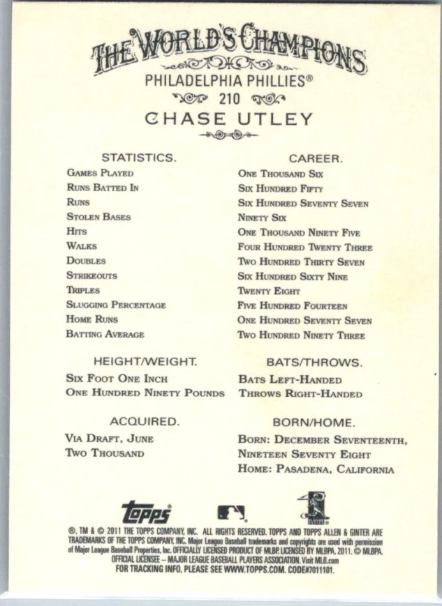 This is a nice example of a 2011 Topps Allen & Ginter #210 Chase Utley