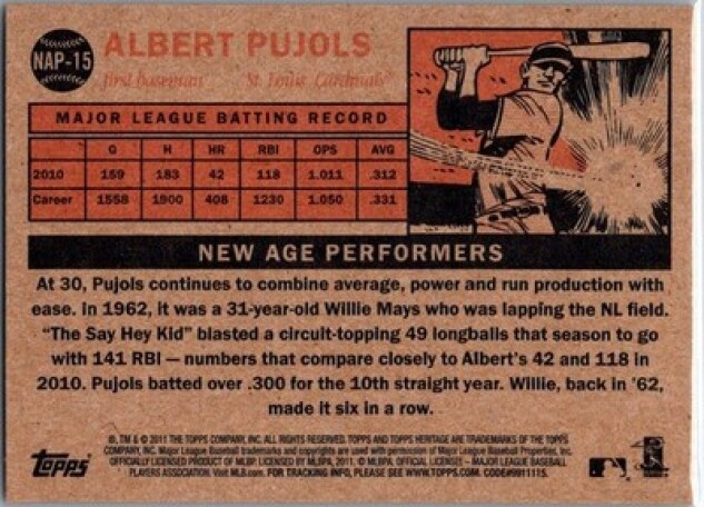 This is a nice example of a 2011 Topps Heritage #NAP-15 Albert Pujols New Age Performers