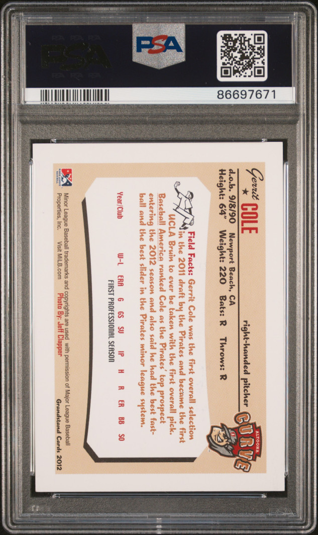2012 Grandstand Altoona Curve Gerrit Cole Altoona Curve. Pop 1.