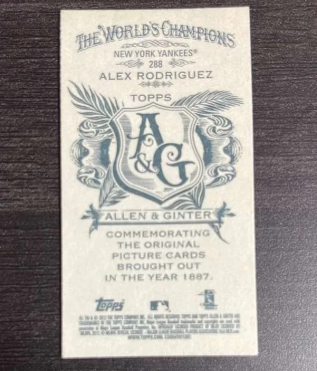 This is a nice example of a 2012 Topps Allen & Ginter - Mini A & G Back #288 Alex Rodriguez