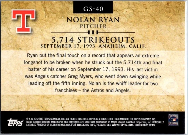 2012 Topps #GS-40 Nolan Ryan Gold Standard