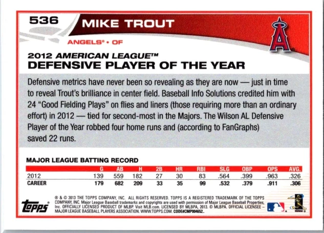 This is a nice example of a 2013 Topps #536 Mike Trout