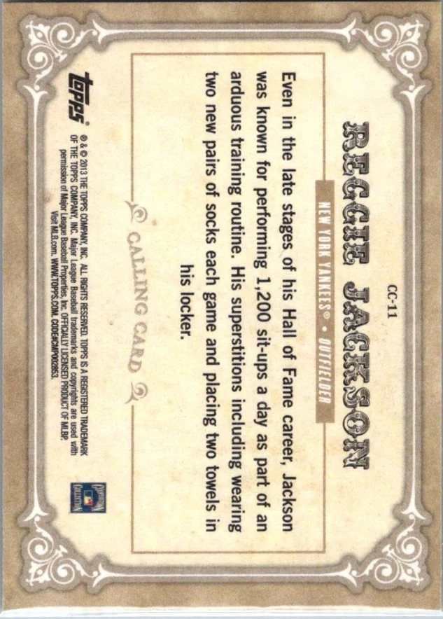 This is a nice example of a 2013 Topps #CC-11 Reggie Jackson Calling Cards