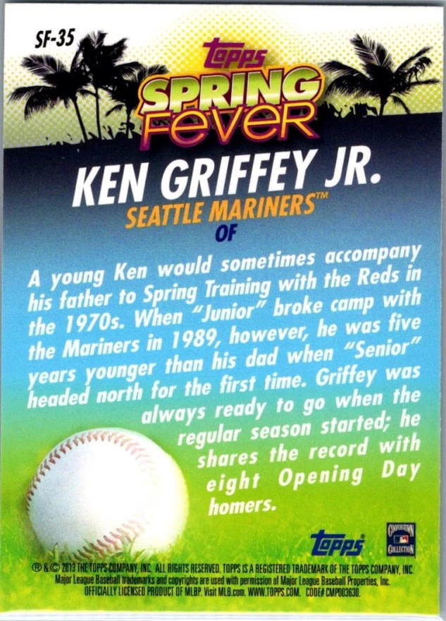 This is a nice example of a 2013 Topps #SF-35 Ken Griffey Jr. Spring Fever