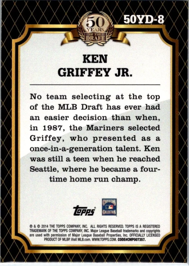 This is a nice example of a 2014 Topps #50YD-8 Ken Griffey Jr. 50 Years of the Draft
