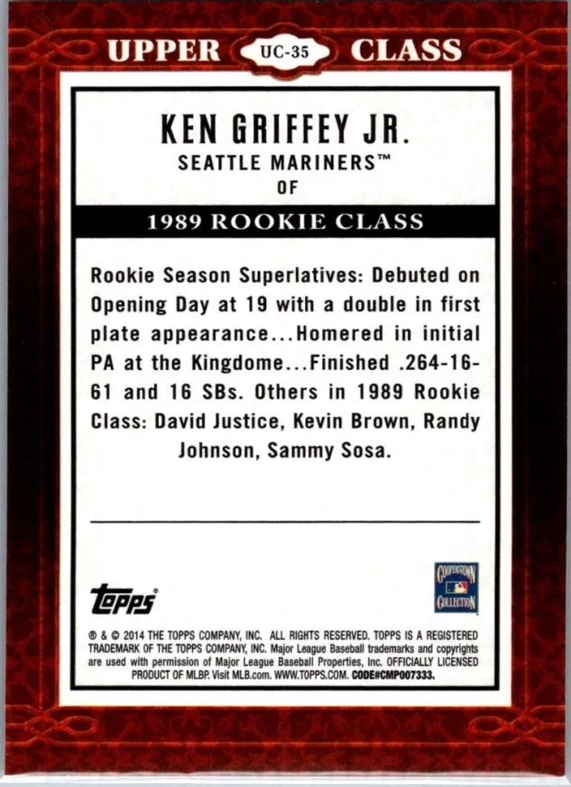This is a nice example of a 2014 Topps #UC-35 Ken Griffey Jr. Upper Class