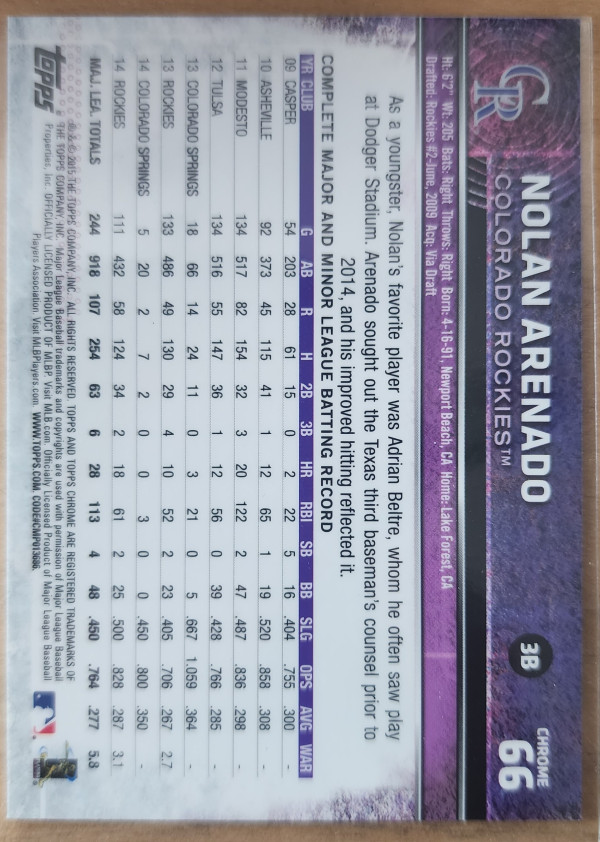 2015 Topps Chrome Nolan Arenado Chome Refractor