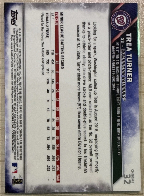 2016 Topps Chrome - Trea Turner #32 (RC)