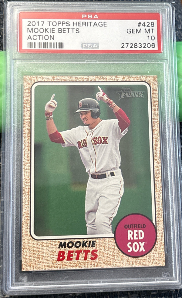Up for sale is a Mookie Betts 2017 Topps Heritage #428 Action Variation. Professionally Graded by PSA, 10 Gem Mint. Population of just 70