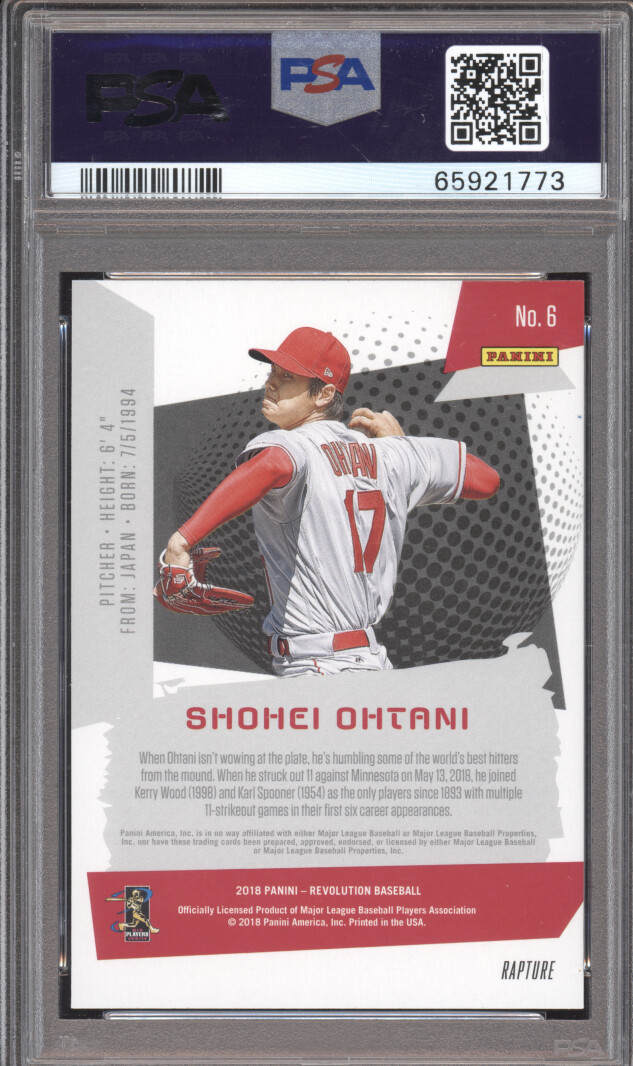You are purchasing a 2018 Panini Chronicles Revolution Shohei Ohtani #6 RC PSA 10. You will receive the exact item in the photographs. Thank you for looking.