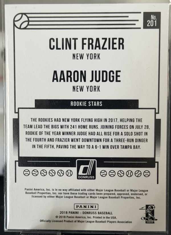 2018 Panini Donruss Rookie Stars #201 Aaron Judge Clint Frazier RC