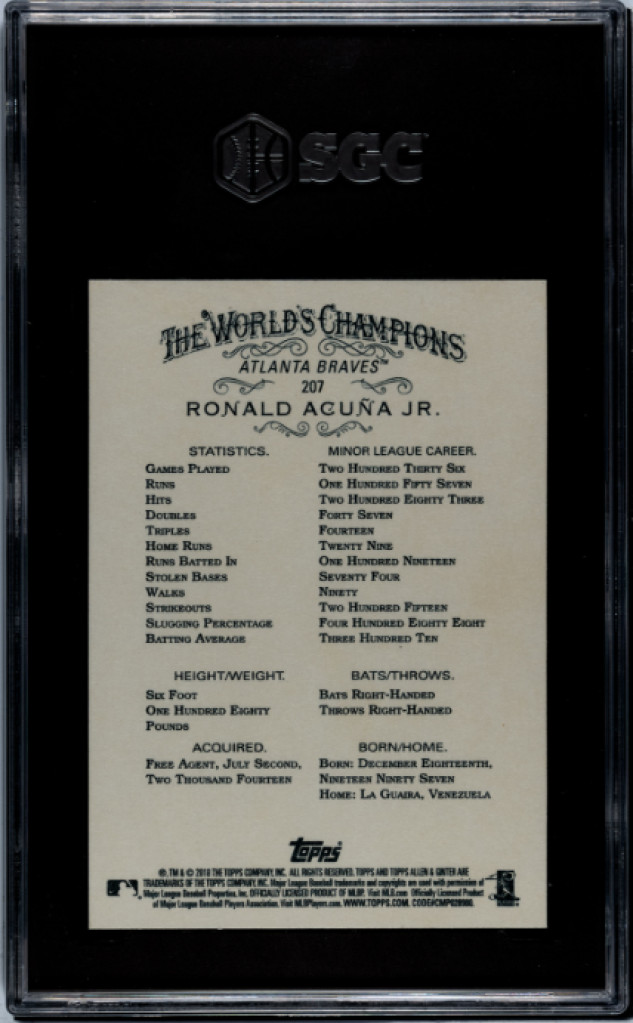 Ronald Acuna Jr. Rookie. 2018 Topps Allen & Ginter. Graded SGC 6.