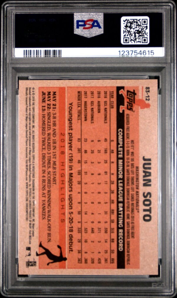 Thanks for your looking at my listing 2018 Topps Update 1983 Topps Baseball Juan Soto 1983 Topps Baseball PSA 9. Let me know if you have any questions!