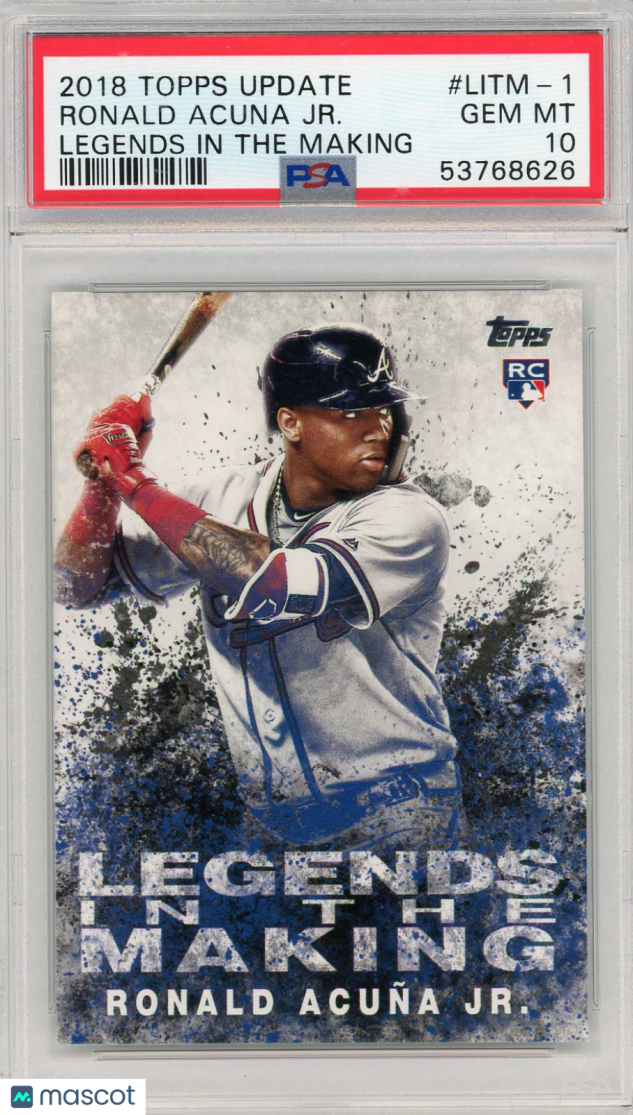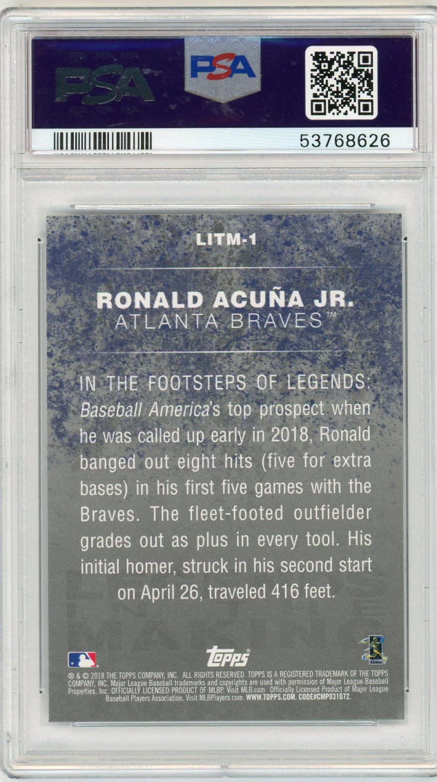 You are purchasing a 2018 Topps Update Legends In The Making Ronald Acuna JR. #LITM-1 PSA 10. You will receive the exact item in the photographs. Thank you for looking.