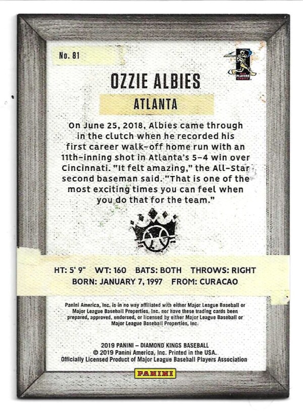 2019 DIAMOND KINGS VARIATIONS PLUME FRAME #81 OZZIE ALBIES