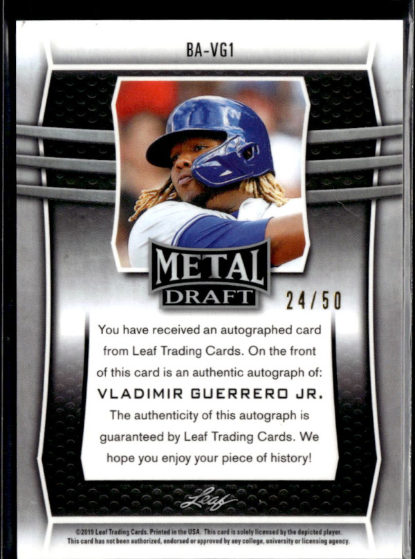 2019 LEAF METAL DRAFT ROOKIE AUTOGRAPH #BA-VG1 VLADIMIR GUERRERO JR. RC (24/50)