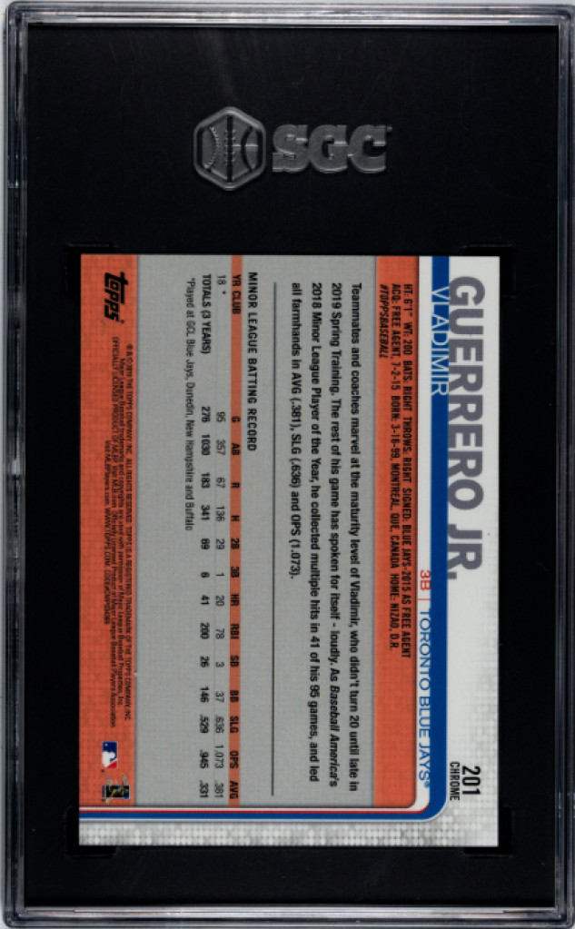 Vlad Guerrero Jr. Gem Mint Baseball Card. Graded SGC 10.