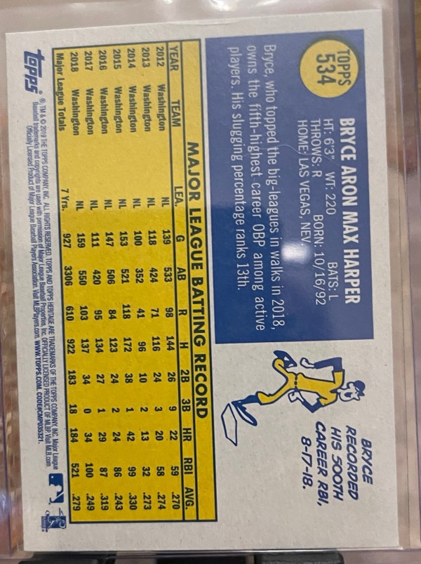 2019 Topps Heritage High Number Bryce Harper #534