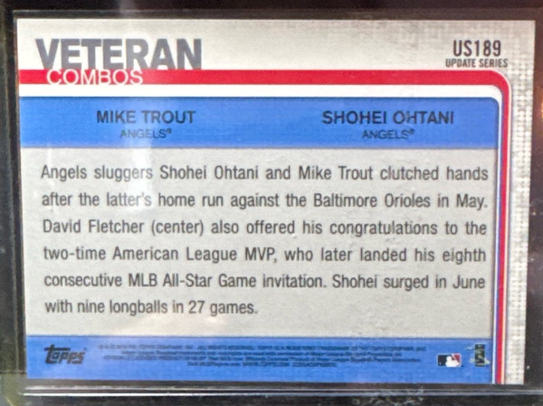 2019 Topps Update Veteran Combos Mike Trout Shohei Ohtani #US189