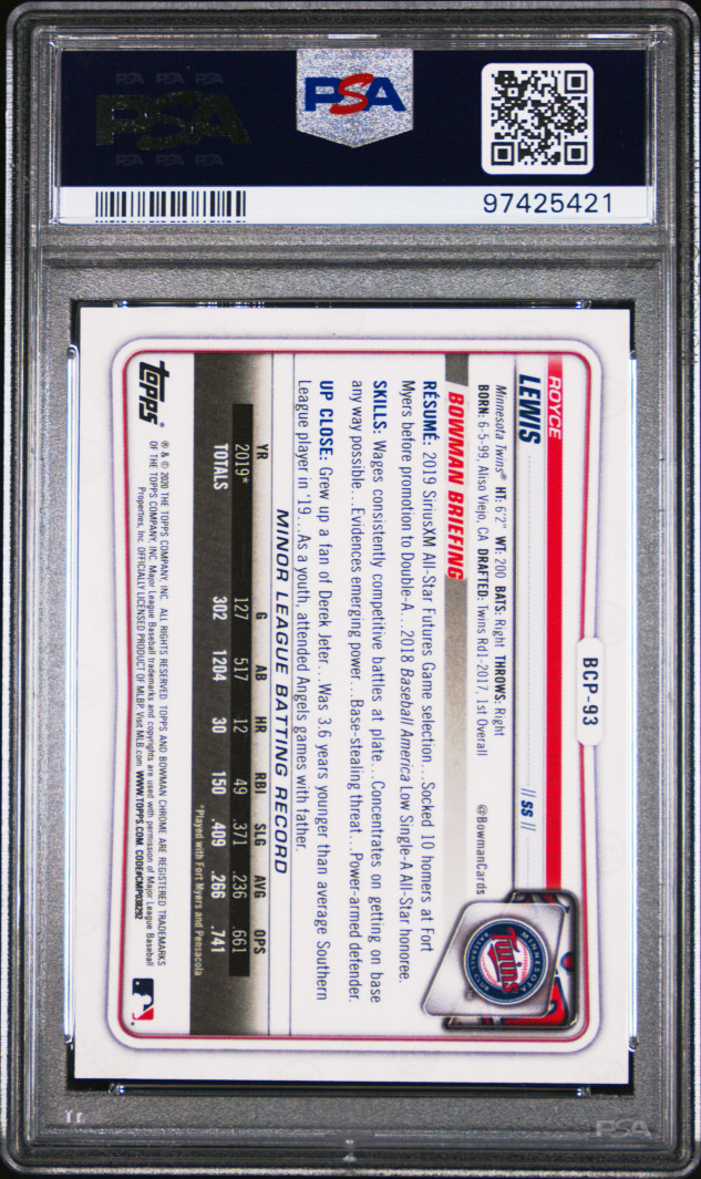 You are purchasing a 2020 Bowman Chrome Prospects Royce Lewis #BCP93 PSA 10. You will receive the exact item in the photographs. Thank you for looking.