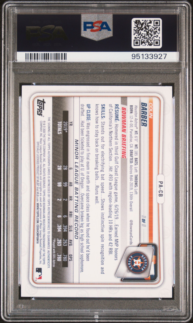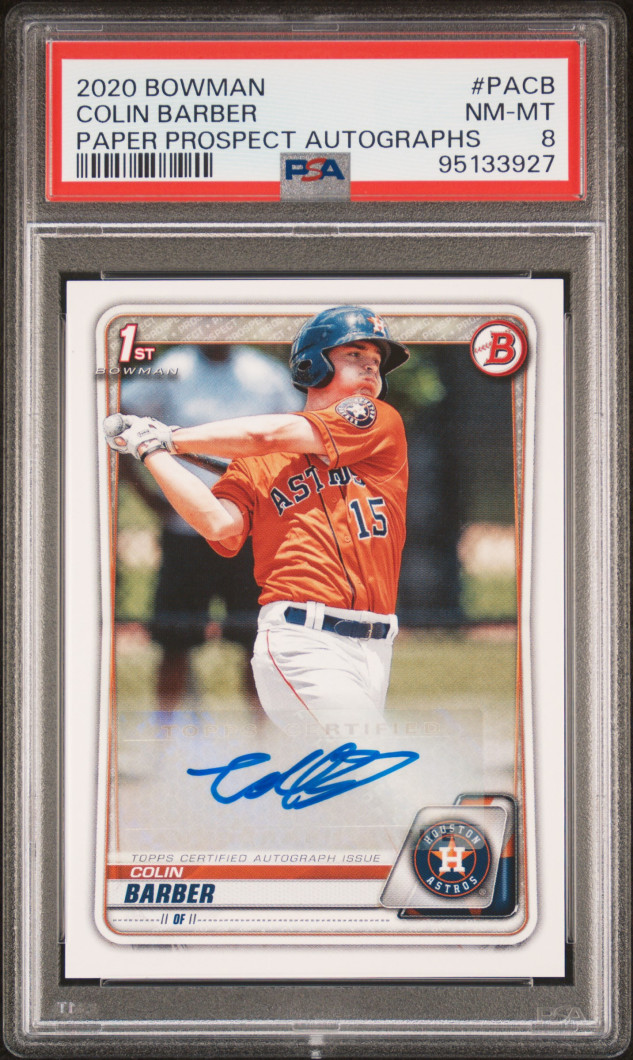 Autographed Colin Barber Paper Prospect Autographs from 2022 in a PSA 8. Even though only a PSA 8 card looks sharp and the price reflects that. HUM for deals