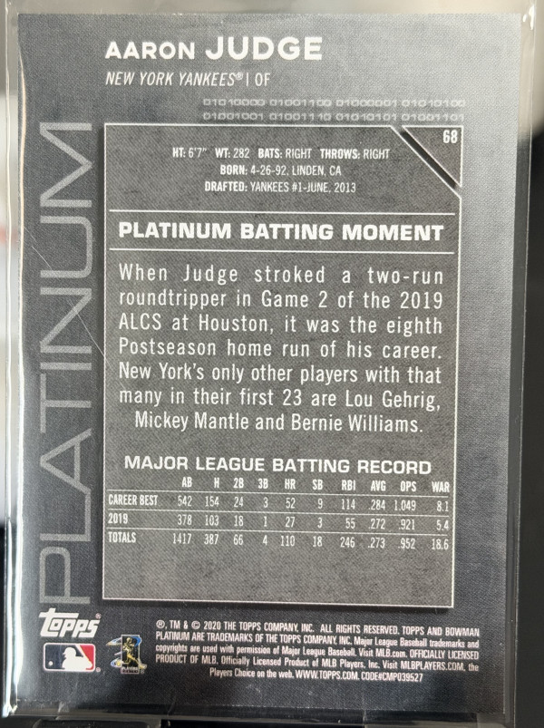 2020 Bowman Platinum Aaron Judge #68 Refractor Parallel