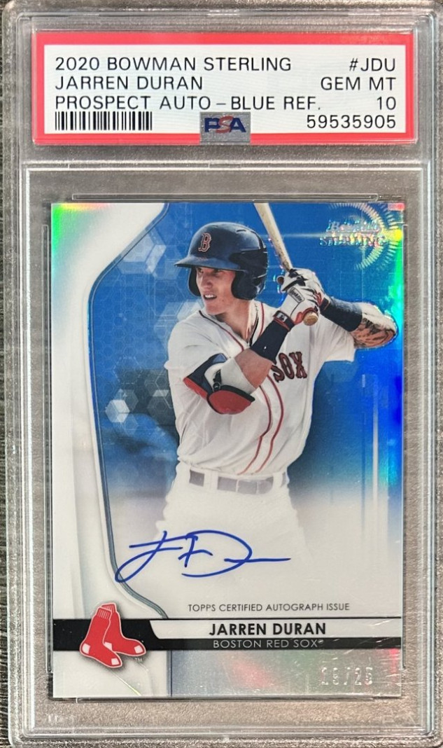 2020 Bowman Sterling Prospect Auto Jarren Duran Blue Refractor /25 PSA 10