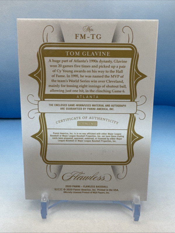 You are purchasing a 2020 Panini Flawless Tom Glavine Tag. You will receive the exact item in the photographs. Thank you for looking.