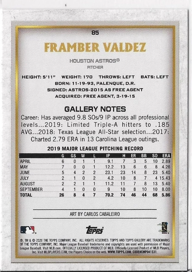 2020 Topps Gallery Framber Valdez Rainbow Foil #85