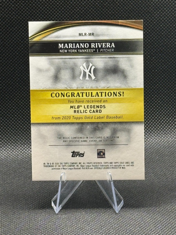 You are purchasing a 2020 Topps Gold Label MLB Legends Mariano Rivera #MLR-MR Relic HOF 1 of 1 Insert. You will receive the exact item in the photographs. Thank you for looking.