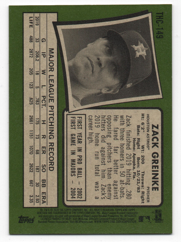 2020 Topps Heritage Hot Box Chrome Purple Refractor #THC-149 Zach Greinke