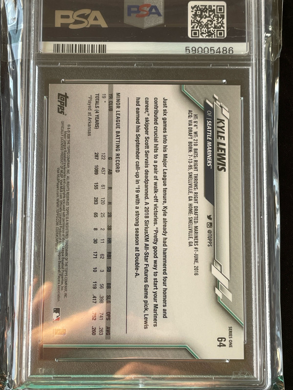 You are purchasing a 2020 Topps base Kyle Lewis rookie psa 10. Upon purchase you will receive the exact card pictured. Thanks!