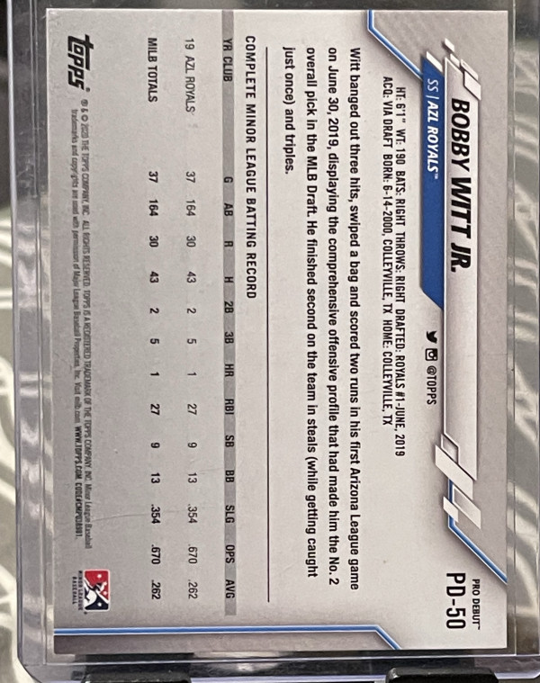 2020 Topps Pro Debut Bobby Witt Jr. #PD-50 Vertical (RC)