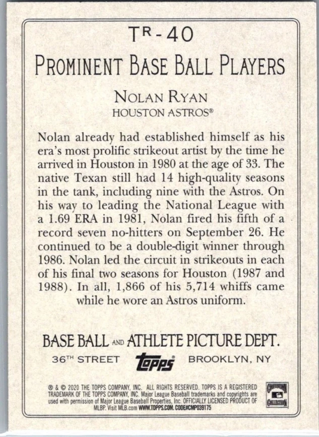 This is a nice example of a 2020 Topps #TR-40 Nolan Ryan Turkey Red 2020 (Series 2)