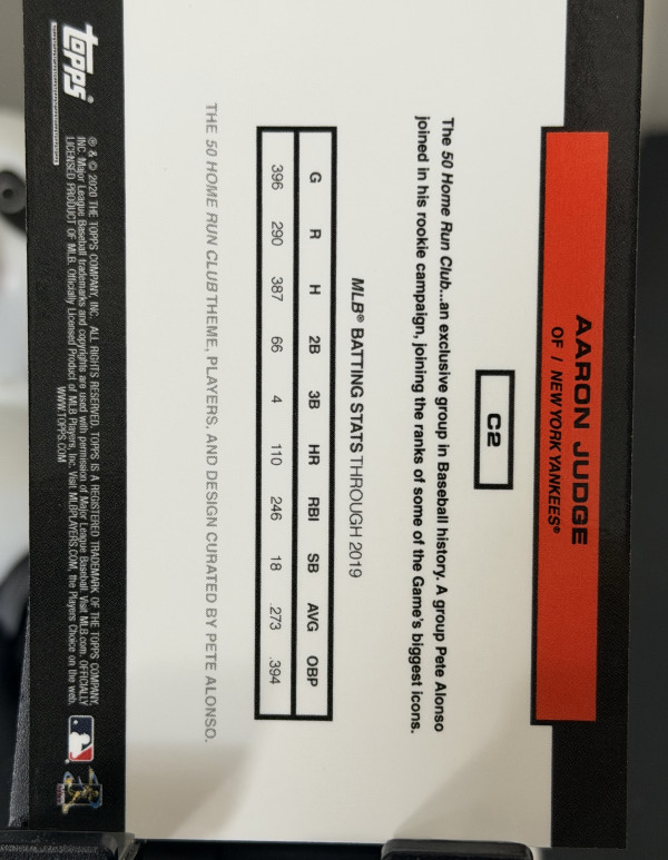 2020 Topps X Pete Alonso- 50 Home Run Club Aaron Judge #C2
