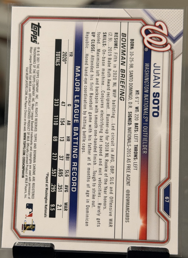 2021 Bowman #67 Juan Soto Washington Nationals