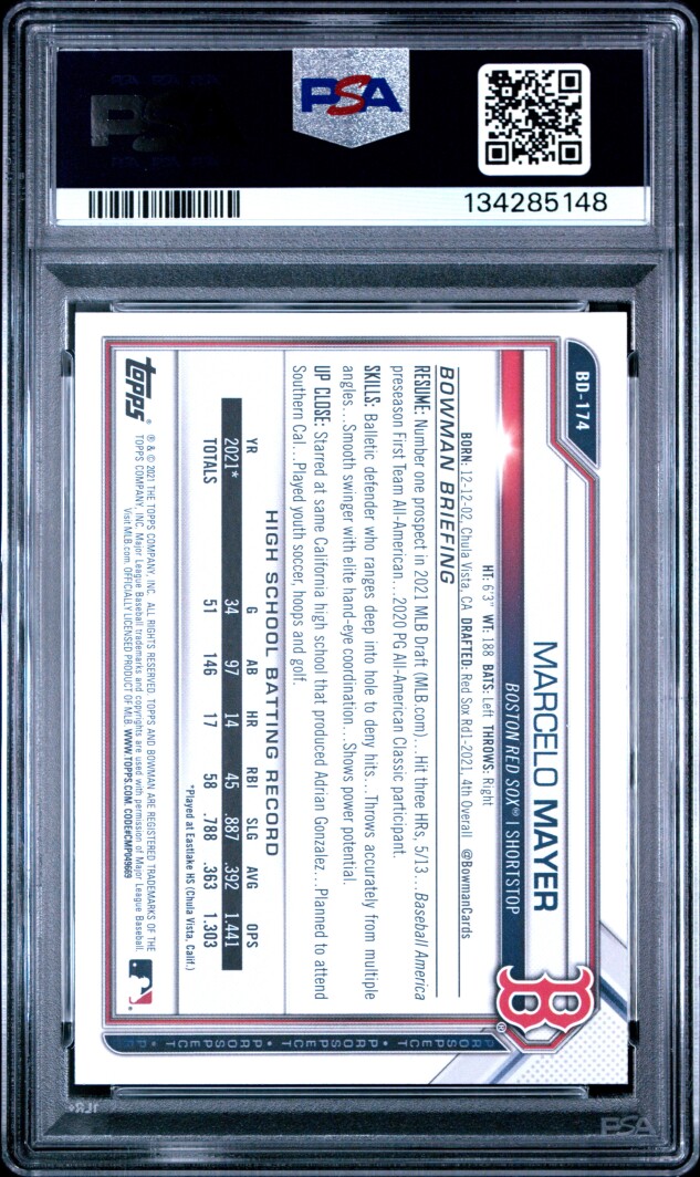 2021 Bowman Draft Marcelo Mayer 1st Bowman PSA 10