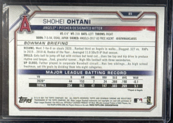 2021 Bowman MLB Baseball 85 Shohei Ohtani Los Angeles Angels