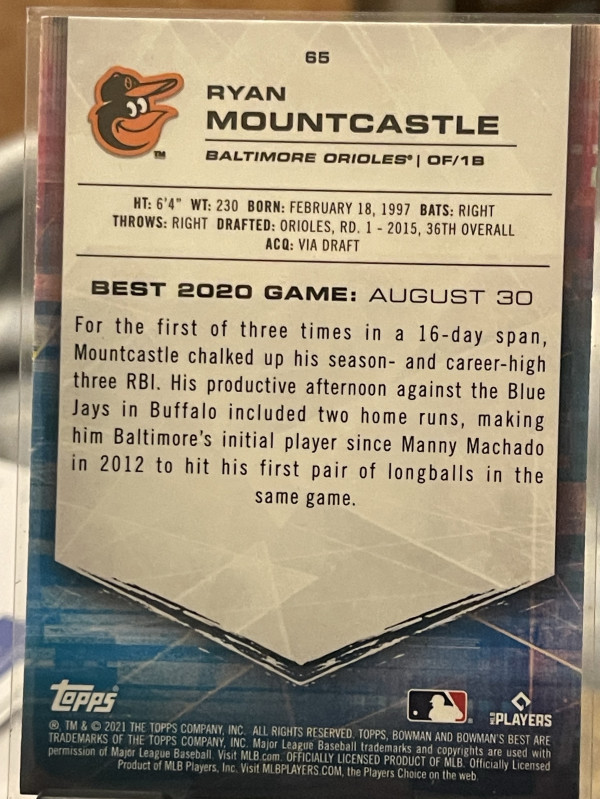 2021 Bowman's Best Ryan Mountcastle #65 Atomic Refractor (RC)