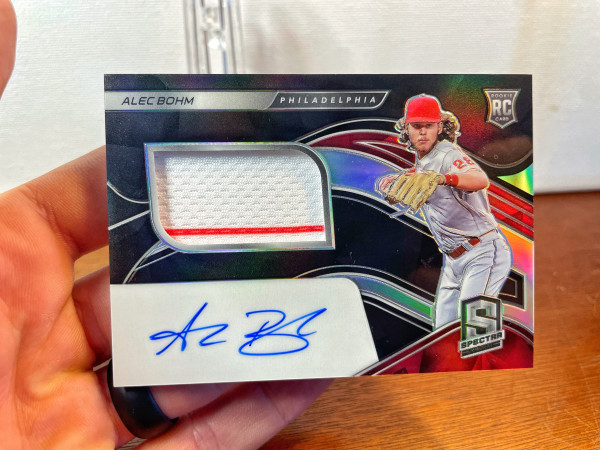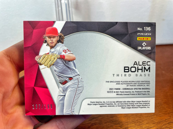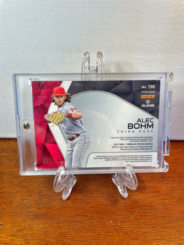 This is (1) 2021 Panini Spectra ALEC BOHM Rookie Patch AUTO #/199 Phillies RPA RC #136. Thank you for checking out my listing!