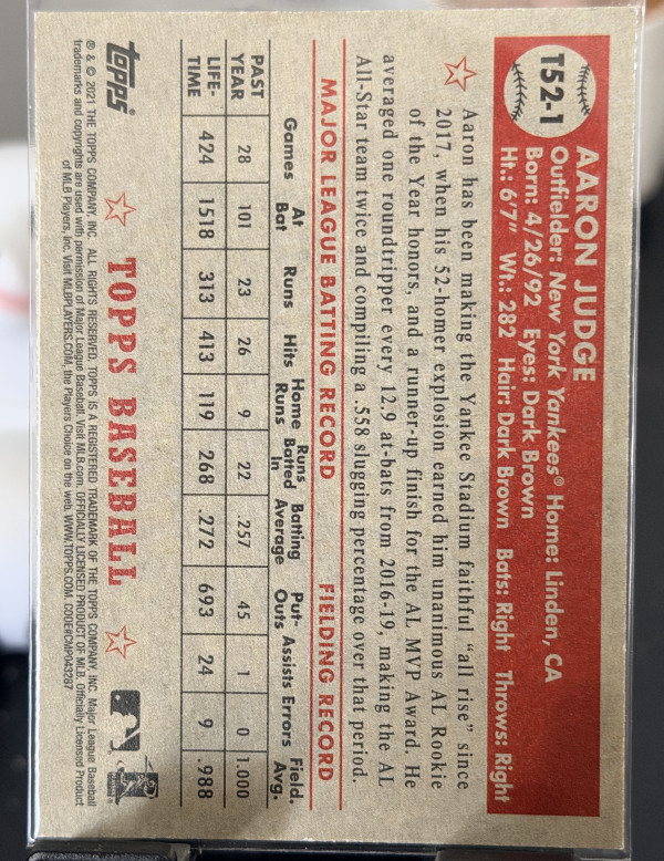 2021 Topps - 1952 Topps Redux Aaron Judge #T52-1