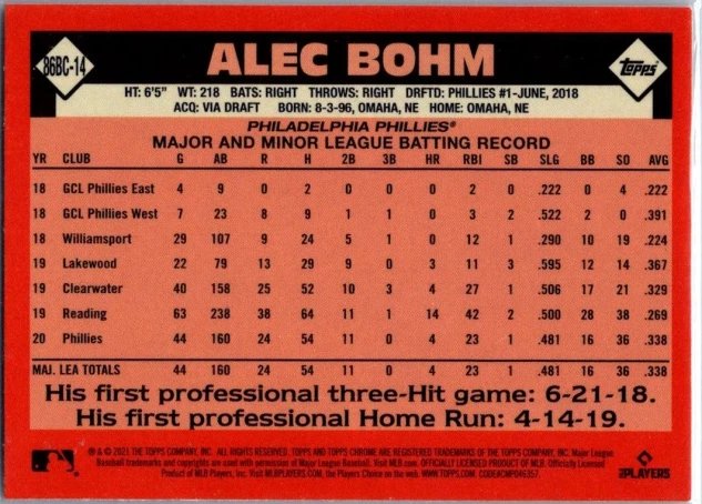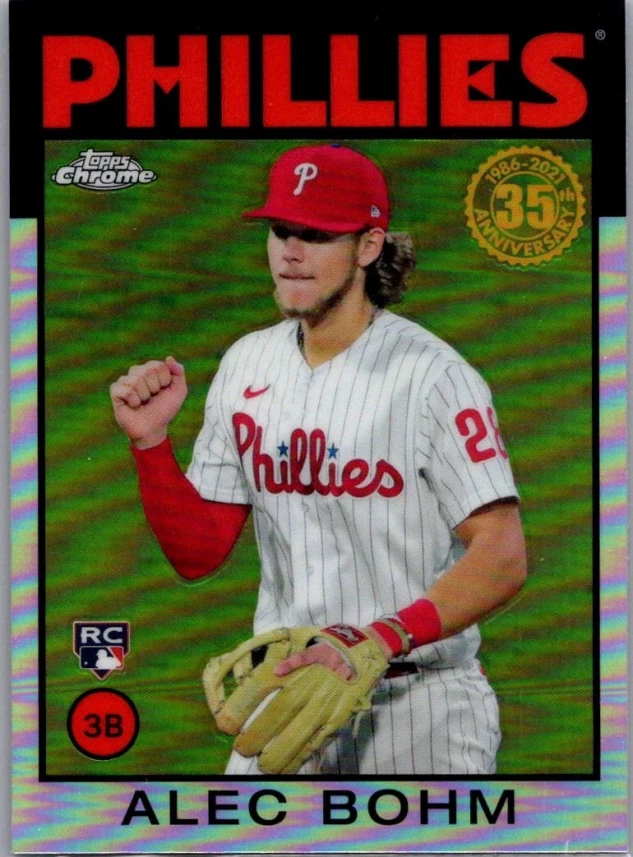 This is a nice example of a 2021 Topps Chrome #86BC-14 Alec Bohm 1986 Topps Baseball 35th Anniversary