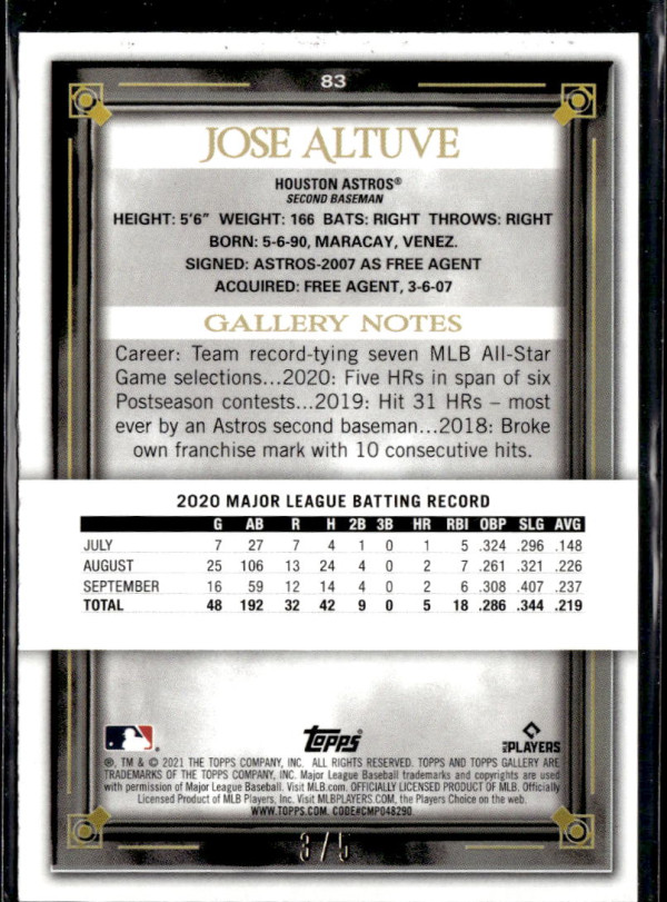 2021 TOPPS GALLERY RED #83 JOSE ALTUVE (3/5)